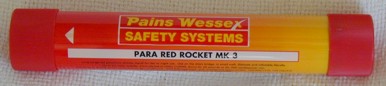 PARACHUTE SIGNAL RED ROCKET THESE BRITISH SIGNAL RED ROCKETS MEASURE 10-1/2" LONG X 1-3/4" WIDE. THEY ARE COMPACT ENOUGH TO CARRY IN A BACKPACK WHILE CAMPING IN A DESOLATE OR REMOTE AREA. THEY WEIGH ONLY 12.4 OUNCES (352 GRAMS). WHEN FIRED, THE ROCKET TRAVELS UPWARDS TO AN ALTITUDE OF 1000 FEET, WHICH THEN EXPELS A PARACHUTE CARRYING A RED FLARE OF 30,000 CANDLE POWER DOWNWARDS WITH A BURN TIME OF ABOUT 40 SECONDS. FOR EMERGENCY USE ONLY! CAUTION: THESE UNITS PRESENT A POSSIBLE FIRE HAZARD IF MISUSED. THE UNITS ARE SLIGHTLY OUTDATED, HOWEVER, WE HAVE FOUND THAT THEY ARE 100% RELIABLE. HV-0173A PARACHUTE FLARE $12.95 EA. (HAZMAT) 25% DISCOUNT